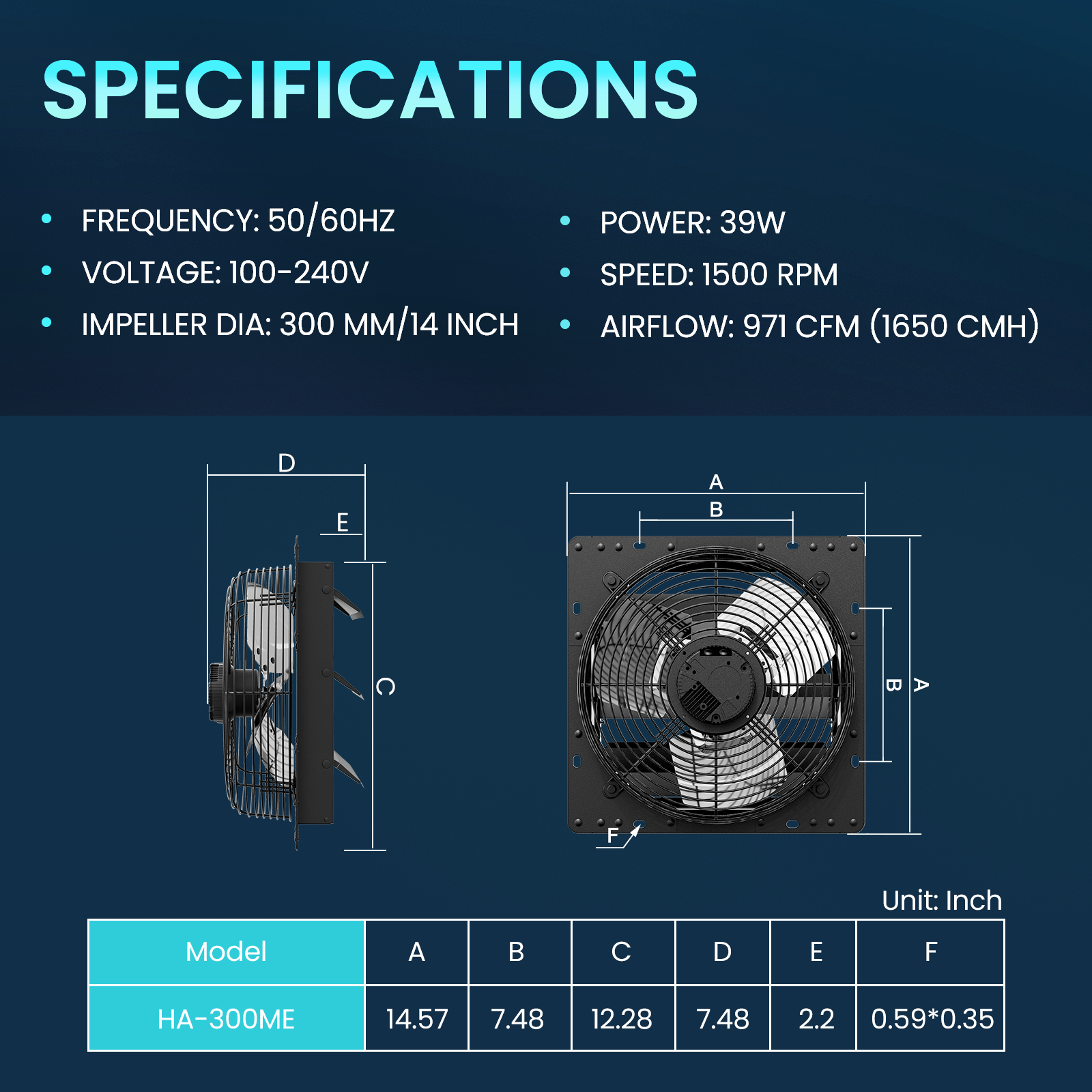 - Easy Installation: This wall exhaust fan features simple installation with pre-assembled parts. The installation size is about 16.4 x 16.4 inch