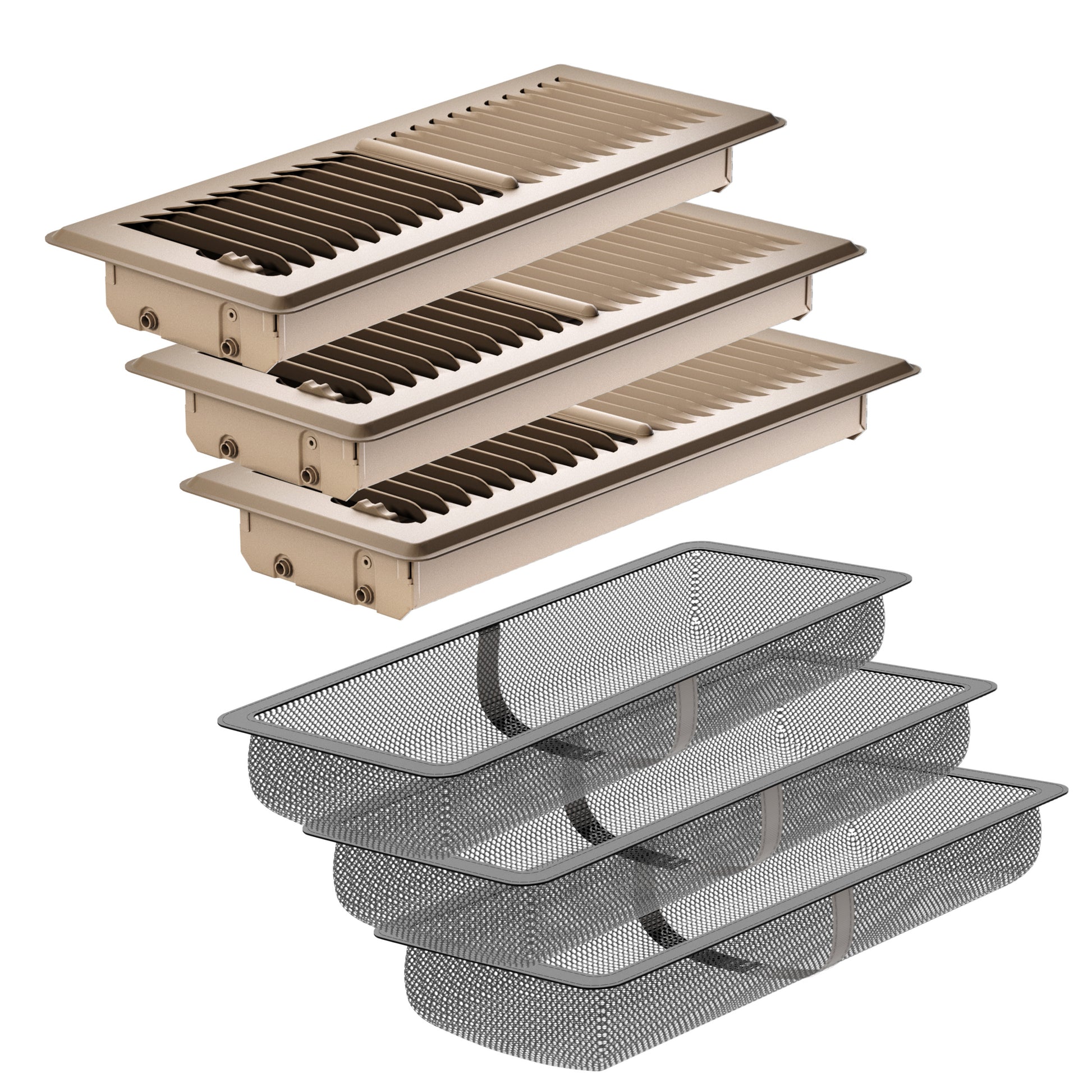 HG Power Floor Register, Heavy Duty Floor Vent Covers for Home with Screen Net, Adjust Metal Rust Proof Finish Air Vent for Kitchen, Office