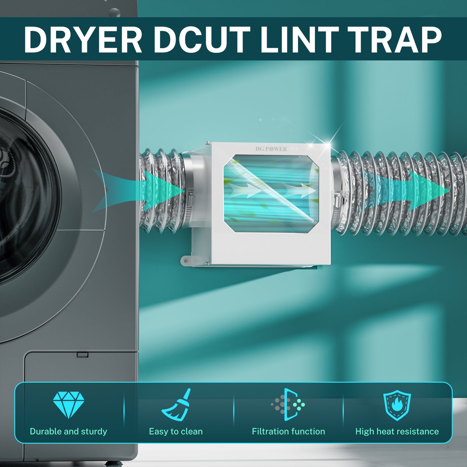 - 4" Duct Compatible: HG Power dryer lint catcher box includes adaptable 4“ 8ft dryer hose and 2 clamps ideal for indoor electric or gas dryers, providing reliable lint cleanup